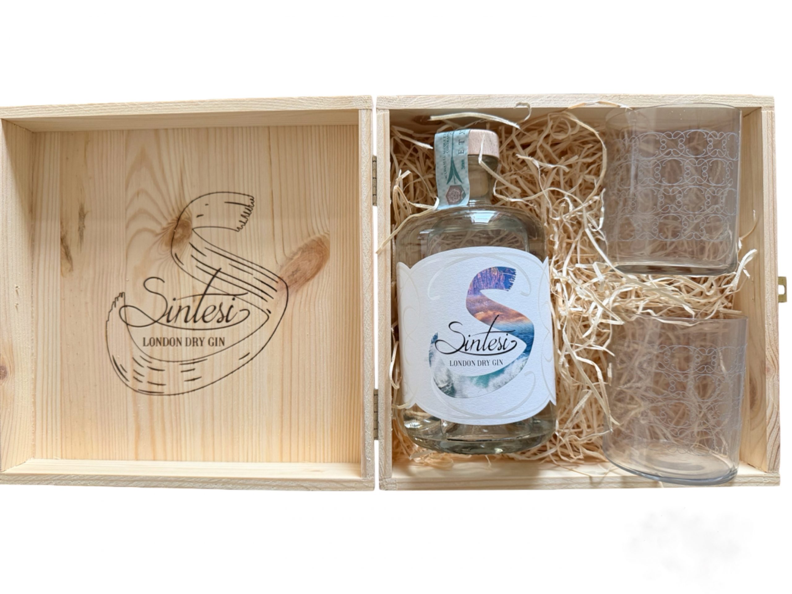 Box in legno Sintesi Gin 70cl + 2 bicchieri